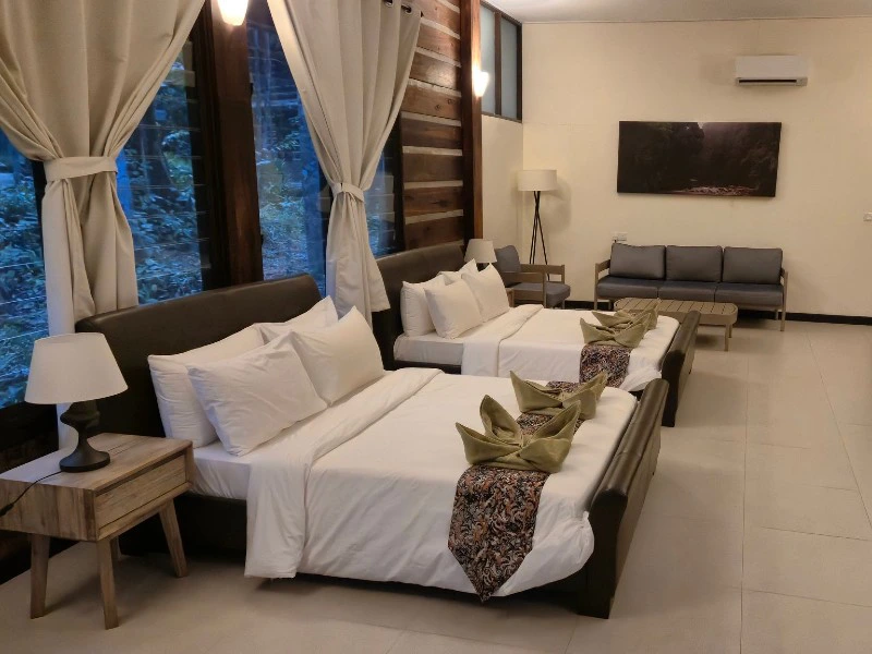 Als kamperen iets te avontuurlijk is, kun je voor deze korte trip ook kiezen voor een comfortabeler alternatief. Je verblijft in de nieuwe, stenen regenwoudlodge. De sanitaire voorzieningen (toiletten en douches) zijn privé en de slaapkamers zijn voorzien van airconditioning.