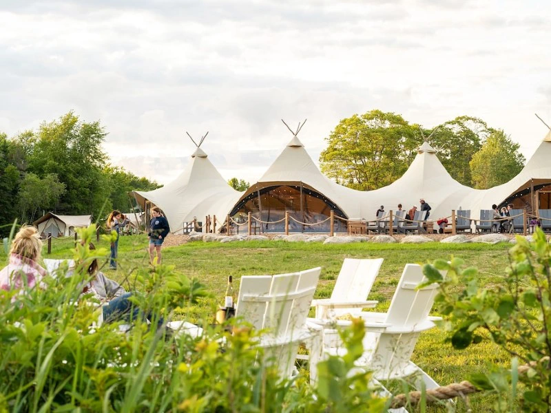 Zoek je wat speciaals, dan bieden wij als alternatief ook een bijzonder glamping verblijf aan, direct aan de kust op circa 40 minuten rijden van Bar Harbor en het Acadia National Park. De tenten zijn ingericht met comfortabele bedden en beschikken over een privébadkamer met douche en toilet. Verder zijn ze voorzien van een houtkachel voor als het ’s avonds afkoelt. Er zijn verschillende soorten tenten geschikt voor twee tot zeven personen. Daarnaast is er een restaurant waar je terechtkunt voor ontbijt en diner, en er is een vuurplek waar je ’s avonds gezellig marshmallows kunt roosteren.