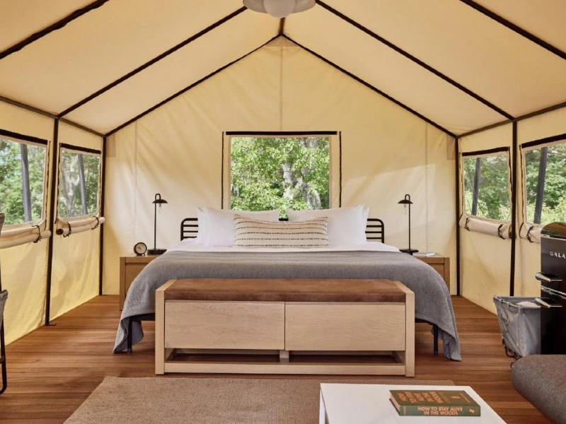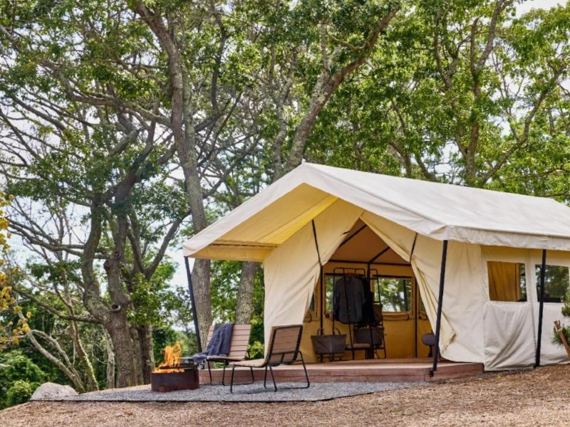 Als uniek alternatief bieden wij je de mogelijkheid in een klassieke Airstreamer te overnachten op een glamping in de buurt van Falmouth, in het zuiden van Cape Cod. De iconische caravans zijn knus, comfortabel ingericht en voorzien van airconditioning. Er is een zithoek met een slaapbank, een kitchenette en een privébadkamer met douche en toilet. De slaapbank is geschikt voor één volwassene of twee kleine kinderen. Naast Airstreamers hebben ze ook een aantal glamping tenten en cabins waar je in kunt verblijven. Er is een restaurant waar je voor je maaltijden terecht kunt als je geen zin hebt om zelf te koken. Verder zijn er gratis fietsen waar je de omgeving mee kunt verkennen.
