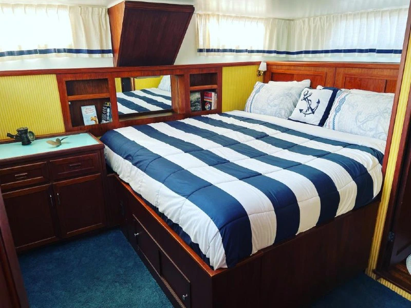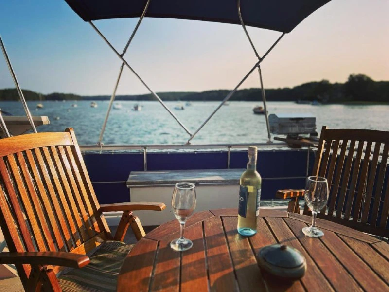 Als alternatief op het verblijf in het resort aan de kust bieden wij je ook de mogelijkheid om in de haven van Damariscotta in je eigen privé-boot te slapen. Eigenaars Olga en Chip zorgen voor een warm welkom, de koelkast is gevuld met kaas en wijn zodat je, nadat je je spullen aan boord hebt gebracht, lekker op het dek kunt genieten van een wijntje bij de ondergaande zon. Vanaf het restaurant aan de overkant klinkt de live muziek door in de haven. Wees niet bang voor zeebenen, het is een rustige rivier en de boot blijft tijdens je verblijf veilig in de haven. Er zit ook een klein keukentje in de boot. Wij vonden het fijn na een aantal dagen uit eten te zijn geweest lekker zelf te kunnen koken. De supermarkt is dichtbij, je kunt het vanaf de haven lopen. Laat je je toch liever bedienen dan kun je de steiger aflopen en aanschuiven bij het café aan de haven voor een burger, kreeft of natuurlijk oesters. Heb je interesse in deze optie, wees er dan snel bij. Er zijn slecht twee boten waar je op kunt verblijven, dus de beschikbaarheid is zeer beperkt.