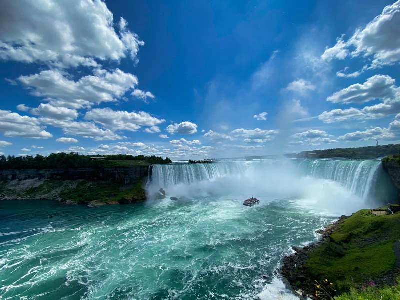De watervallen bestaan uit drie grote delen, verdeeld over Amerikaanse en Canadese gronden. Er zijn diverse excursies te boeken om dichtbij de watervallen te komen, zowel lopend als per boot. Voor het mooiste uitzicht is het aan te raden zeker de Canadese kant te bezoeken. Hier kun je ook een ritje nemen met een antieke kabelbaan, de Whirlpool Aero Car uit 1916. Boek je een bouwsteen naar Niagara Falls, dan is de Maid of the Mist boat tour inbegrepen. De boot neemt je mee tot dichtbij de horseshoe falls, de meest beroemde waterval van Niagara Falls. Combineer je verblijf met een tour langs de Wine trail en proef de unieke ijswijn. De wijn is gemaakt van druiven die speciaal in de ijskou worden geteeld, de wijn wordt dus geproduceerd uit bevroren druiven en dat geeft een heel bijzondere zoete dessert wijn.