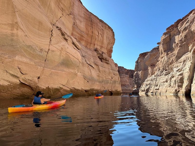 Wil je de natuur liever op een rustige manier ontdekken? Kies dan voor een kajaktour over Lake Powell. Vanaf het water zie je het bijzondere landschap op een heel andere manier, met indrukwekkende rotswanden die langzaam aan je voorbijglijden. Je slaat een zijtak van het meer in en peddelt over een rivier tot je bij een aanlegplek komt. Vanaf daar wandel je een minstens zo indrukwekkende slot canyon in. Hier ben je bijna alleen, waardoor je volop kunt genieten van de rust en de natuur om je heen. Perfect als je even wilt ontsnappen aan de drukte en dit natuurspektakel op je eigen tempo wilt beleven.