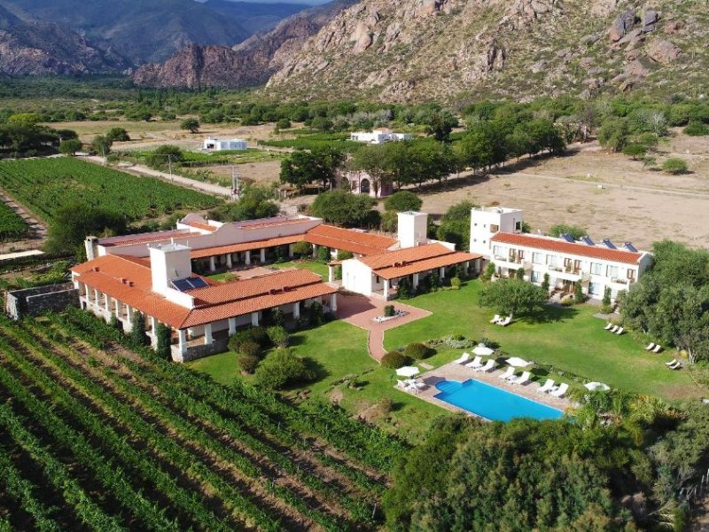 De route naar Cafayate is een van de mooiste van het land. Je rijdt door de Quebrada de las Conchas, waar rood, oranje en geel elkaar afwisselen in grillige rotsformaties. In de namiddag kom je aan bij je wijnverblijf tussen de wijngaarden, een rustige plek waar je de Andes in de verte ziet liggen. Je kamer kijkt uit over de ranken en ’s avonds drink je een glas lokale Torrontés op het terras, terwijl de zon achter de bergen verdwijnt.