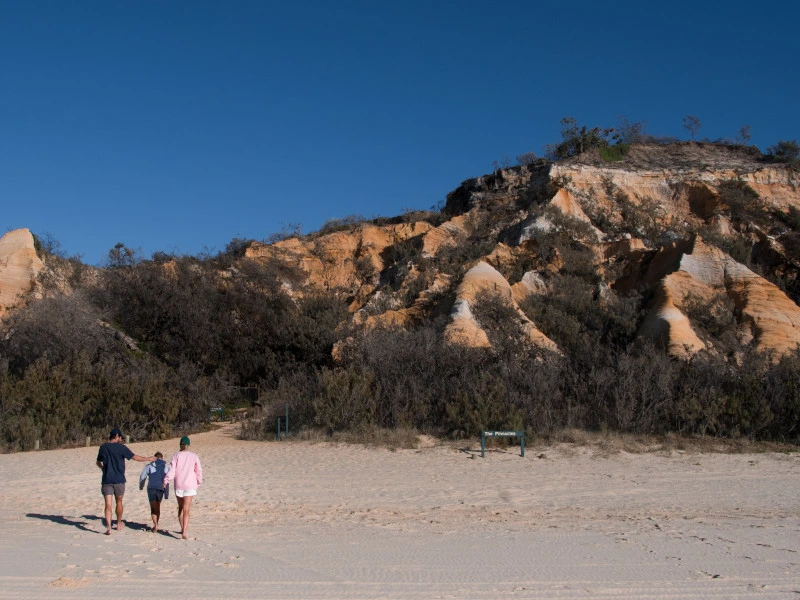 Je start deze bouwsteen vanuit Brisbane. Nadat je de auto hebt opgehaald maak je je op voor een rit noordwaarts naar Rainbow Beach, gelegen aan de Sunshine Coast. Onderweg vinden wij het een aanrader om te stoppen bij de Glasshouse Mountains; zestien vulkanische rotsen die tot op de dag van vandaag nog steeds een belangrijke spirituele betekenis hebben voor de Aboriginals. Vanaf de lookout kijk je uit over dit Jurasic Park achtig landschap. Tegen het einde van de middag kom je aan in het typisch Australische kustplaatsje Rainbow Beach waar je de komende twee nachten in ons guesthouse slaapt. Het heeft een ‘laid-back’ sfeertje met een lang strand en is nog niet ontdekt door het grote publiek.