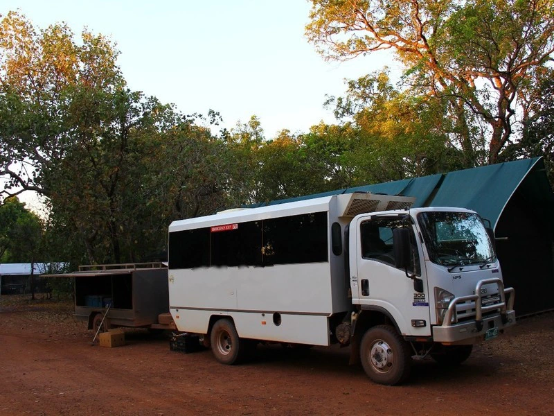 ✓ Reizen door ongerept gebied in 4WD truck en kamperen in permanente tenten