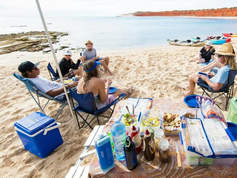 Je wordt centraal in Denham opgehaald en met een kleine groep van maximaal 10 personen rijd je over ruige wegen het nationale park in. Jouw gidsen, afkomstig uit de inheemse gemeenschap van de regio, zullen je verrassen met hun kennis, verhalen en humor. Eenmaal in het kamp kun je kajaks pakken en door beschutte baaien peddelen, aanmeren op verlaten stranden en zwemmen tussen kleurrijke koraalriffen vol fascinerend zeeleven. Vang onder begeleiding je eigen avondeten en bereid het boven een knapperend kampvuur. Ontspan daarna bij het warme vuur en laat je betoveren door de oeroude klanken van de didgeridoo onder een hemel vol sterren.