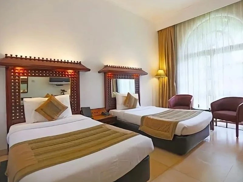 Na je vlucht vanuit Amsterdam kom je aan op de luchthaven van Delhi. Je wordt opgehaald door je chauffeur en naar je hotel gebracht. Dit hotel ligt op een half uur rijden van het vliegveld aan de rand van de stad. Je slaapt niet middenin de hectische drukke stad. In het hotel heb je een comfortabele kamer met aangrenzende badkamer. Een prima plek om van je jetlag af te komen.