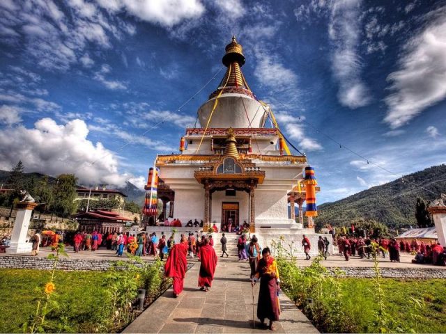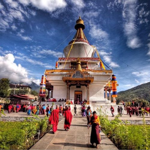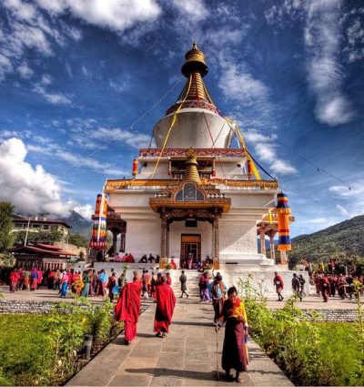 Heb je voor vertrek nog wat tijd over, dan kun je samen met je gids de Thimphu Memorial Chorten bezoeken. Dit kleine tempeltje uit 1974 is een belangrijke pelgrimsplek voor de lokale bevolking. Ook leuk is een rondje door het Folk Heritage Museum. De toegang is gratis en je krijgt hier een goed beeld van de Bhutaanse cultuur en manier van leven, met onder andere huishoudelijke spullen, werktuigen en gebruiksvoorwerpen uit het dagelijks leven. Zodra jullie er klaar voor zijn, staan je gids en chauffeur voor je klaar om je naar je volgende bestemming te brengen.