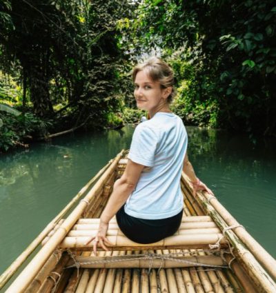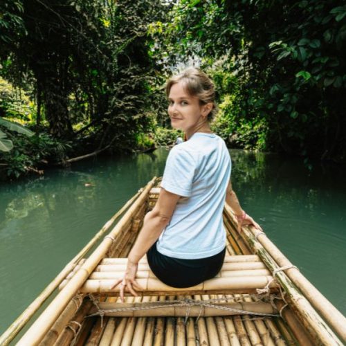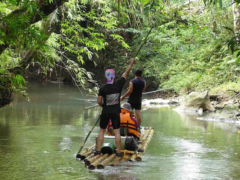 Na het ontbijt stap je op een traditioneel bamboevlot en begint je tocht over de rivier. Je dobbert rustig langs regenwoud en kleine stroomversnellingen, ontspannen, maar met een klein beetje avontuur. Onderweg stop je voor een lunch, waarbij gerechten in bamboe worden bereid.