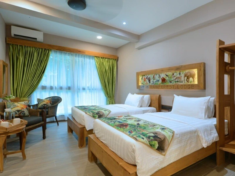 Bij aankomst in Lahad Datu, staat het vervoer naar het ongerepte Virgin Jungle Reserve van Sungai Kapur al te wachten. Na een rit van 2,5 uur arriveer je in Utan Rainforest Lodge, je verblijf voor de komende twee nachten. De kamers zijn ruim, voorzien van airconditioning en een eigen badkamer. De aankomende dagen zijn al je maaltijden inbegrepen en je komt net op tijd aan voor de lunch vandaag.