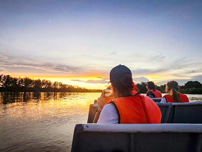 Wellicht word je gewekt door krijsende gibbonaapjes en het typerende geluid van neushoornvogels. In de vroege ochtend vaar je met een bootje richting de nabijgelegen meren waar het dierenleven langs de waterkant langzaam ontwaakt. Je ziet apen, grote hagedissen, krokodillen en met een beetje geluk olifanten langs de waterkant. In de loop van de ochtend vaar je rustig terug naar de lodge voor een smakelijk ontbijt. In de middag kun je nog een wandeling maken in de omgeving. Later op de dag vaar je uit op zoek naar meer wilde dieren. Als de zon onder begint te gaan vaar je terug voor het diner en overnachting in de jungle lodge.