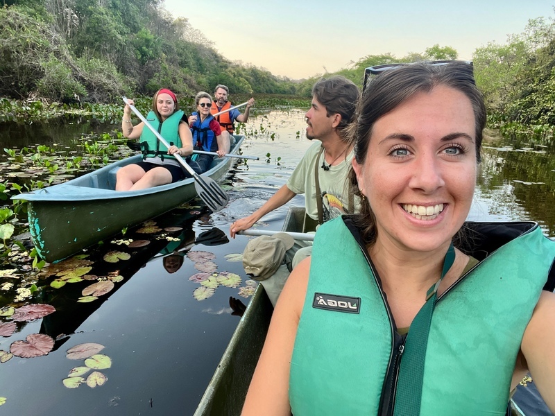 Je hebt een paar uur vrij om te ontspannen of rond te kijken voordat het eten op tafel wordt gezet. Als je nog een halve dag te besteden hebt dan kun je meteen aansluiten bij een van de aangeboden activiteiten. Dat dit één groot wildreservaat is, kun je zien aan de vele kaaimannen en watervogels. Ook meer zeldzame dieren zoals het gordeldier, de poema’s of jaguar hebben hier hun leefgebied. Of je ze ook daadwerkelijk zult zien is een kwestie van (veel) geluk. Wij zagen verse jaguar sporen …