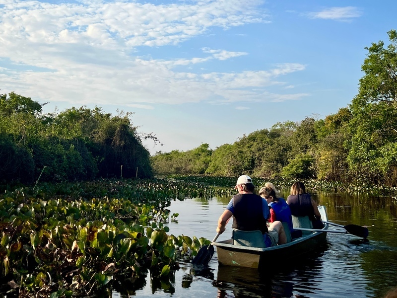 Je hebt een paar uur vrij om te ontspannen of rond te kijken voordat het eten op tafel wordt gezet. Als je nog een halve dag te besteden hebt dan kun je meteen aansluiten bij een van de aangeboden activiteiten. Dat dit één groot wildreservaat is, kun je zien aan de vele kaaimannen en watervogels. Ook meer zeldzame dieren zoals het gordeldier, de poema’s of jaguar hebben hier hun leefgebied. Of je ze ook daadwerkelijk zult zien is een kwestie van (veel) geluk. Wij zagen verse jaguar sporen …