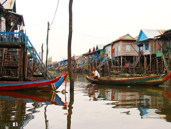 Een kwart van de Cambodjaanse bevolking heeft zich gehuisvest aan het Tonlé sapmeer in drijvende boten op palen. Deze huisjes vormen zich samen tot drijvende vissersdorpjes met drijvende huizen, drijvende markten en zelfs drijvende scholen. De palen zijn metershoog omdat in het regenseizoen het waterlevel wel tot zo’n twaalf meter stijgt. De drijvende dorpjes op het Tonlé Sapmeer zijn een indrukwekkende bezienswaardigheid en behoren zeker tot de hoogtepunten van Cambodja.
