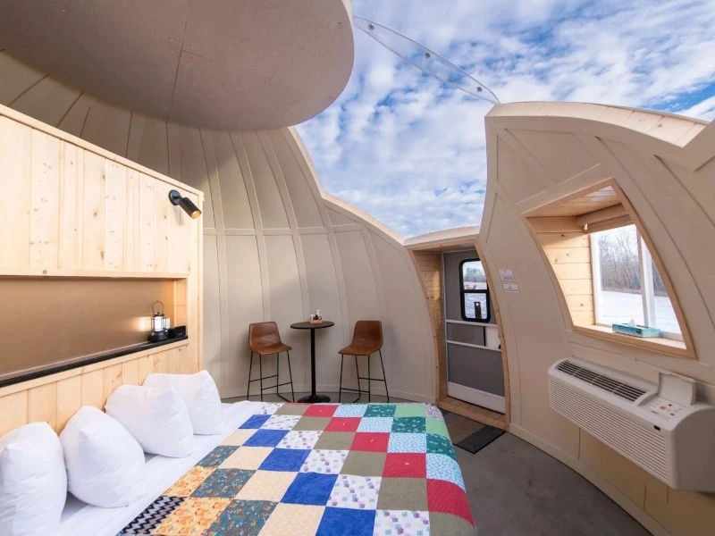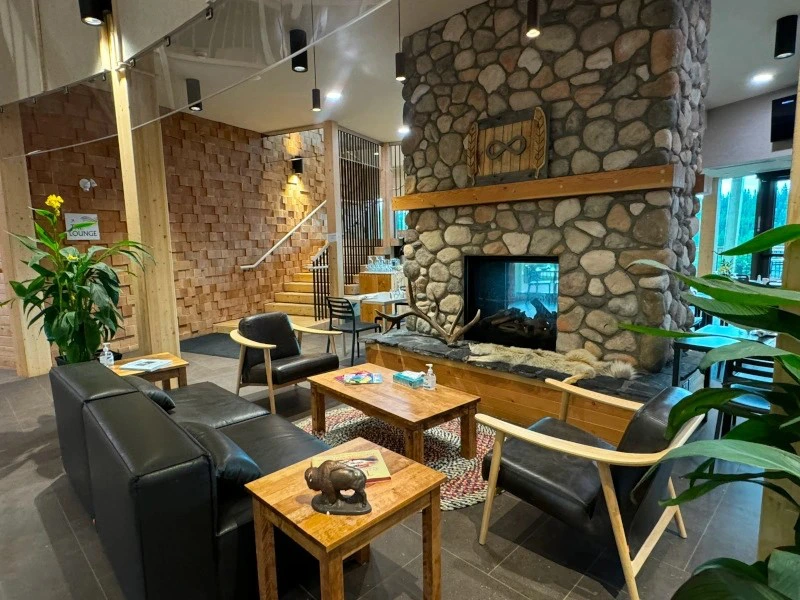 Als alternatief voor een overnachting in de “iglo” met glazen koepel, kun je in een hotelkamer in de lodge verblijven. Alle kamers zijn ontworpen door de Métis en met liefde ingericht. Het knapperende haardvuur in de lounge en de zithoeken nodigen je uit om hier te relaxen. Je hebt direct toegang tot het cultureel centrum en het restaurant.