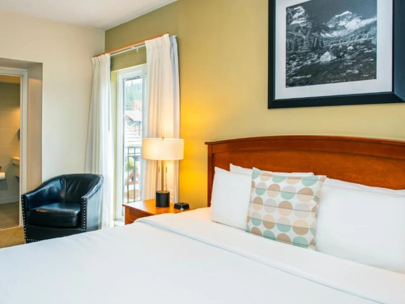 Ons comfort hotel ligt ook in Canmore. De lodge is sfeervol ingericht met natuurlijke materialen. Lees een boek op je lederen bank bij de openhaard, of kom bij in de SPA van de lodge. Een fijne plek om te ontspannen en te genieten van het uitzicht op de besneeuwde toppen van de Rocky Mountains.