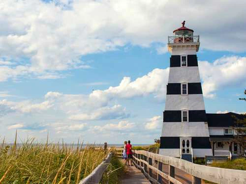 Prince Edward Island bereik je via een zeventienkilometer lange brug vanuit New Brunswick of je neemt vanaf Nova Scotia de ferry. Het eiland is heel divers. Op Lennox Island maak je kennis met de Mi’kmaq-cultuur: je leert meer over hun tradities en levenswijze, en hoort verhalen die al generaties lang worden doorgegeven. In de hoofdstad Charlottetown stap je aan boord van een vissersboot om zelf te ervaren hoe kreeften worden gevangen. Uniek is ook een overnachting in een echte vuurtoren aan de kust, waar je in slaap valt met het ruisen van de zee op de achtergrond. Met deze bouwstenen ontdek je Prince Edward Island van verschillende kanten: de cultuur van de First Nations, het vissersleven en een overnachting die je nergens anders vindt.