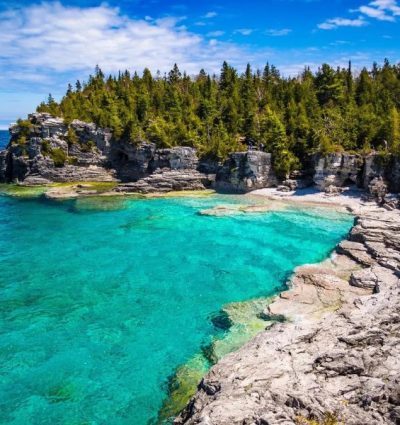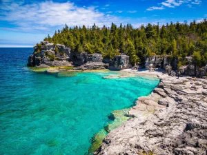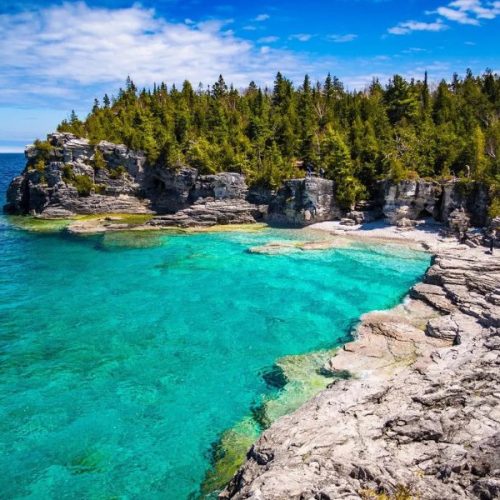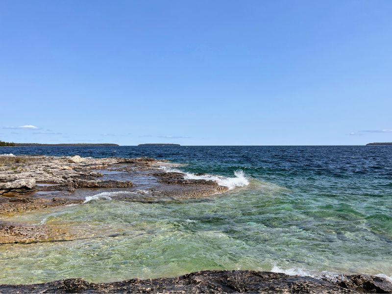Tijd om verder te rijden naar de noordpunt van de Bruce Peninsula. Dit schiereiland wordt volledig omringd door Lake Huron en Georgian Bay en staat bekend om zijn ruige kliffen, onderwatergrotten en knalblauwe water. Hier ligt ook de Bruce Trail, Canada’s oudste en langste wandelroute met indrukwekkende uitzichten. Voor een bezoek aan Bruce Peninsula National Park is het handig om vooraf te reserveren. Liever het water op? In Fathom Five National Park ontdek je scheepswrakken, unieke rotsformaties en Flowerpot Island met wandelpaden langs grotten.