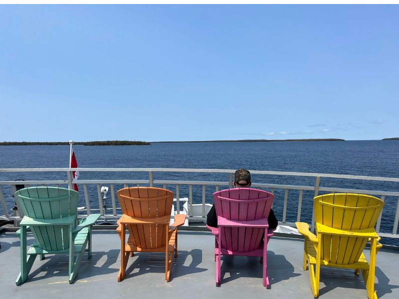 Vanaf je hotel in Tobermory kijk je uit op de haven waar je vandaag de oversteek naar Manitoulin Island maakt. De ferry kaartjes regelen wij, dus je hoeft alleen maar in de rij aan te sluiten. Het kan even duren voordat het inschepen begint, dus parkeer je auto in de rij en haal een koffie of ontbijtje bij het zaakje ernaast, de bagels zijn een aanrader! We plannen de ferry in de ochtend voor je in zodat je alle tijd hebt op Manitoulin Island. De oversteek op de MS Chi-Cheemaun (of gewoonweg Chi-Chee) duurt ca. 2 uur. Zoek bij mooi weer een plekje op het dek voor het prachtige uitzicht op de Georgian Bay en Lake Huron.