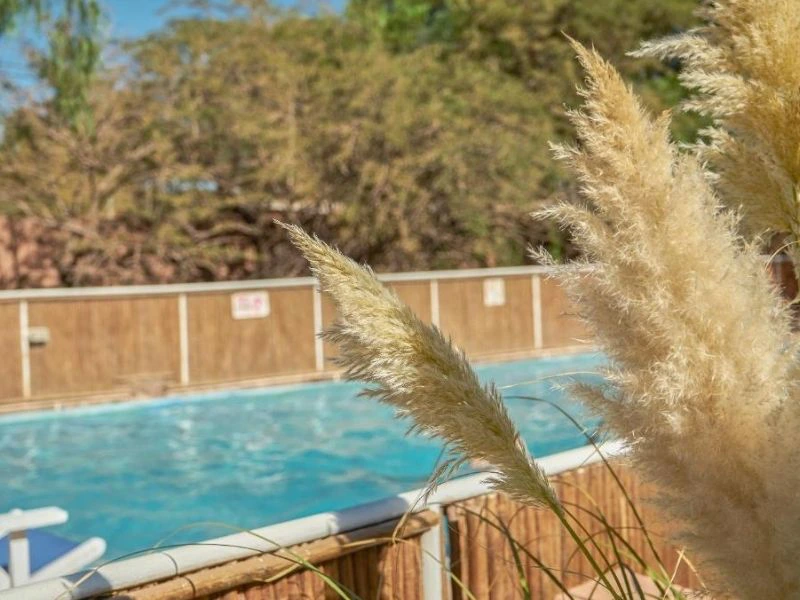 Vanwege de temperaturen die flink op kunnen lopen, vinden wij ons comfort hotel met zwembad een toegevoegde waarde. Door de relaxte sfeer, de zandkleurige muren en hangmatten in de tuin past het volgens ons prima in deze omgeving. Voor een meerprijs van € 25,‐ per persoon verblijf je twee nachten in een fijn hotel met zwembad.