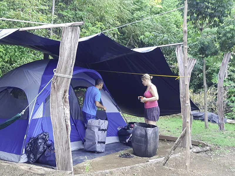 Nadat we de tent hebben opgezet is het tijd om aanmaakhout te sprokkelen en vuur te maken. Zodra het vuur flink aangewakkerd is maken we de zelf gevangen vis klaar samen met wat andere meegenomen ingrediënten. Als het na het eten langzaam donker wordt gooien we nog wat extra hout op het kampvuur en leren we onze gastheer wat beter kennen. Wij spreken geen Spaans en Ronaldo maar een klein beetje Engels, maar met handen en voeten weten we ons toch verstaanbaar te maken. We hebben geluk, want na wat regen eerder op de dag is de lucht nu opengetrokken en kijken we ’s nachts uit op een hemel vol sterren. Moe maar voldaan duiken we onze tent in.