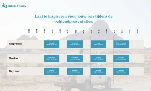 Laat je inspireren tijdens sessies over bestemmingen als Thailand, Zuid-Afrika, Amerika, Indonesië, Sri Lanka, Costa Rica, Japan, Mexico, Canada en Australië. Je ontmoet andere reislustige ouders, spreekt onze bestemmingsexperts en doet volop ideeën op voor een reis die past bij jullie gezin.