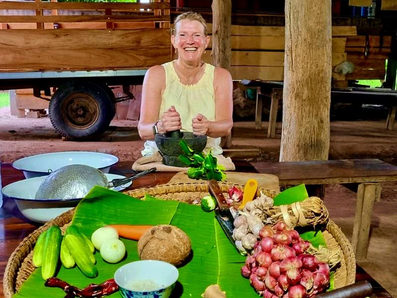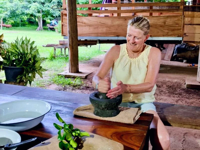 Wanneer je liever wil kajakken dan suppen, dan plannen we dat voor je in.  Rond vier uur in de middag stap je dan ook in je kajak om langzaam de rivier af te zakken. Al peddelend zie je hoe het lokale leven zich aan de oever afspeelt: vrouwen doen de was in de rivier, kinderen spetteren en spelen en boten varen af en aan. Naarmate het steeds donkerder wordt schitteren de vuurvliegjes steeds meer. Wil je liever suppen met zonsondergang? Laat het ons weten, zodat we dit voor je in kunnen plannen. Wil je wat meer van deze groene omgeving meepakken dan plannen we mountainbiken voor je in. Je stapt in de vroege ochtend op de fiets, wanneer het nog niet te warm is, en fietst ongeveer twee tot drie uur langs de rivier, over smalle zandpaden. We plannen een makkelijke route voor je in, zodat dit voor iedereen goed te doen is.