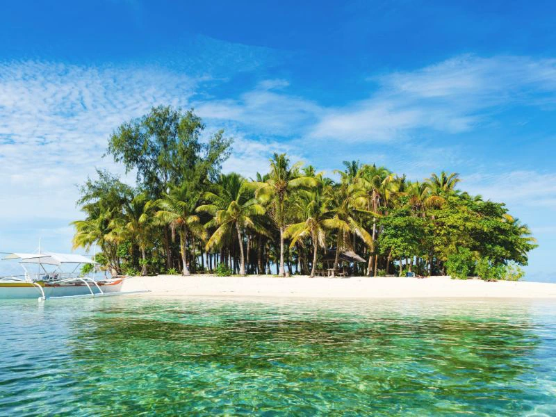 Stap aan boord van een traditionele outrigger boot en ontdek drie iconische eilandjes rond Siargao. Naked Island is een ongerepte zandbank omringd door helderblauw water. Daku Island biedt een tropisch decor met wuivende palmen en een poederwit strand, ideaal om te zwemmen of te ontspannen. Guyam Island is een klein, fotogeniek eilandje met palmbomen en een rustige sfeer.