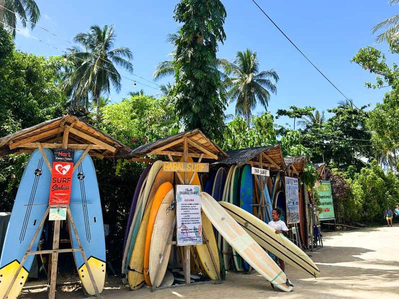 Reis je naar Siargao, dan reis je met het vliegtuig. Het eiland ligt namelijk ver buiten de gebaande paden. En dat maakt het meteen een bestemming waar je heen wil tijdens je Filipijnen-reis. Vanaf Manila en Cebu vlieg je in ongeveer 1,5 rechtstreeks naar Siargao. Het kleine vliegveld komt zo uit een stripboek: palmbomen zo ver als je maar kijkt en één kleine landingsbaan. Het tropische laid back gevoel begint hier al. We regelen een transfer voor je naar je hotel: tijd voor ontspanning. Voor de zonsondergang ga je naar de pier bij Cloud 9, dé surfspot bij General Luna. Wanneer je daarna de kleine stad inloopt vind je genoeg restaurants met Filipijnse én Westerse gerechten.