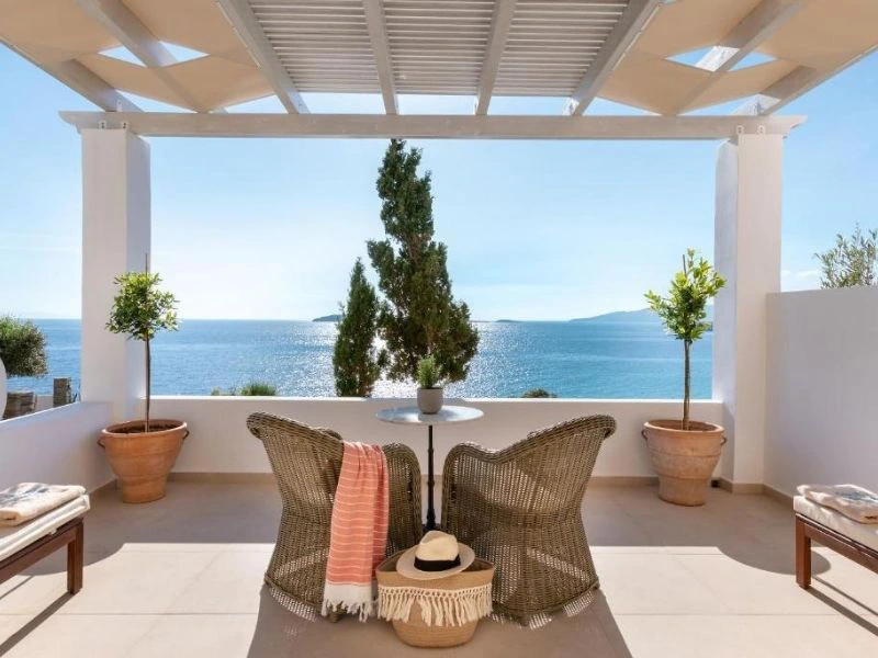 Op zoek naar wat meer comfort? Kies dan voor een verblijf in een sfeervol boutique-hotel. Je verblijft in een comfortabele kamer met airco en een balkon en hebt uitzicht op de tuin of de zee. We werken met een mix van verschillende boutique-hotels. Het ene hotel heeft een zwembad, de ander een relaxte tuin. Ze liggen allemaal in een rustige kustplaats op loopafstand van het strand en gezellige taverna’s. Na een lange dag wandelen over het eiland, plons je lekker in de verkoelende zee. Aan het einde van de middag bestel je een cocktail op het strand en zie je de zon langzaam wegzakken in de zee.