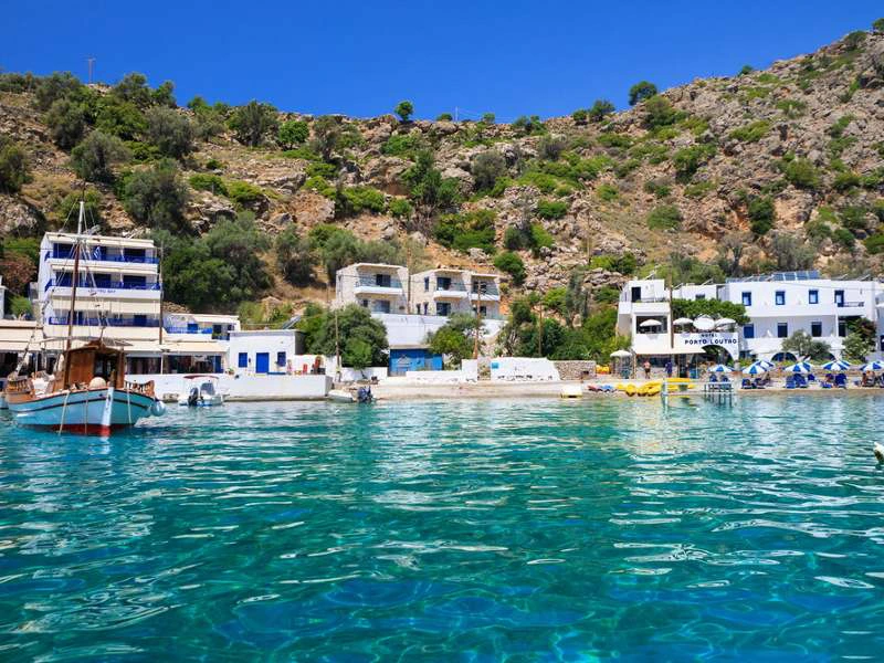 Nog niet uitgewandeld? Ga dan op wandeltocht langs de kristalheldere zee. Vanaf Chora Sfakion wandel je namelijk in ongeveer drie uur naar Loutro. Onderweg stop je bij Sweet Water Beach voor een fris drankje, waarna je verder loopt. Loutro is enkel te bereiken met de boot of te voet. Wat ons betreft een paradijs. Een klein kiezelstrand, wat lokale tavernes en de frisgekleurde bootjes die dobberen op de zee. Picture perfect dus. Geen zin om te wandelen? Pak dan de boot; die brengt je in een kwartier naar Loutro. En ook weer terug aan het einde van de dag.