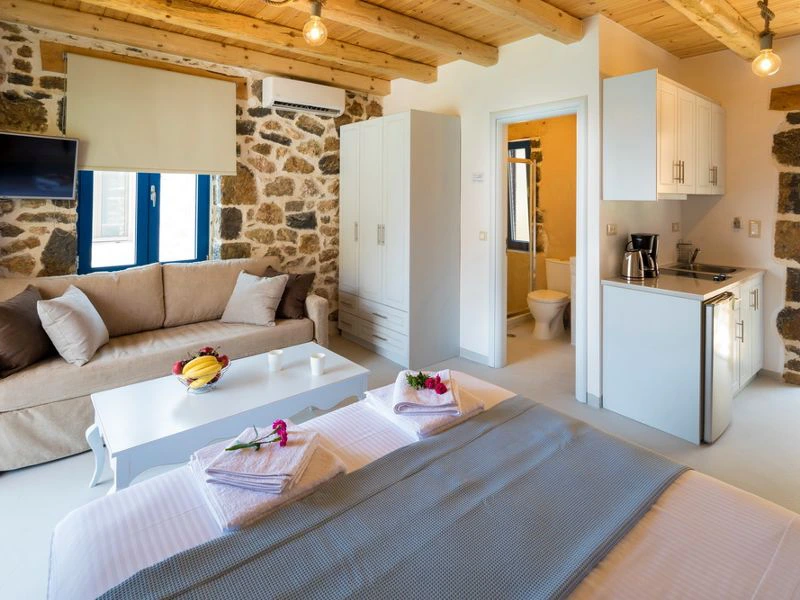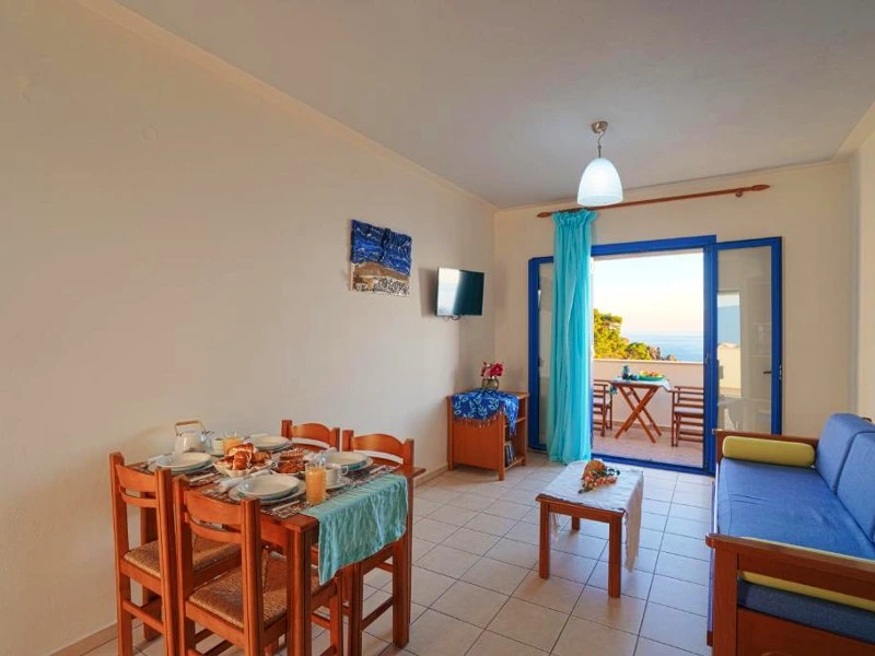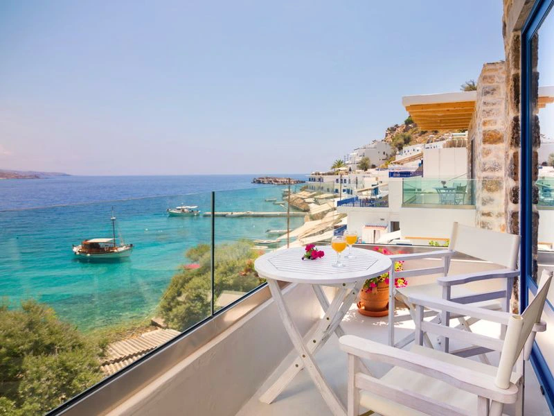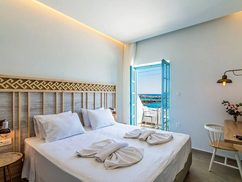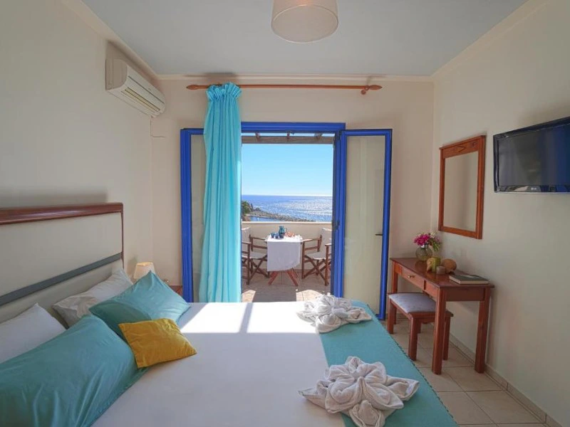 Wil je liever overnachten in een hotel met zwembad? Dan regelen we dat voor je. Dit hotel ligt nét buiten Chora Sfakion; de tavernes, winkels en de haven zijn per voet bereikbaar. De kamers zijn eenvoudig ingericht, met witte tegels op de vloer, maar van alle gemakken voorzien. Je kamer heeft een balkon; hier is het heerlijk buiten zitten.
