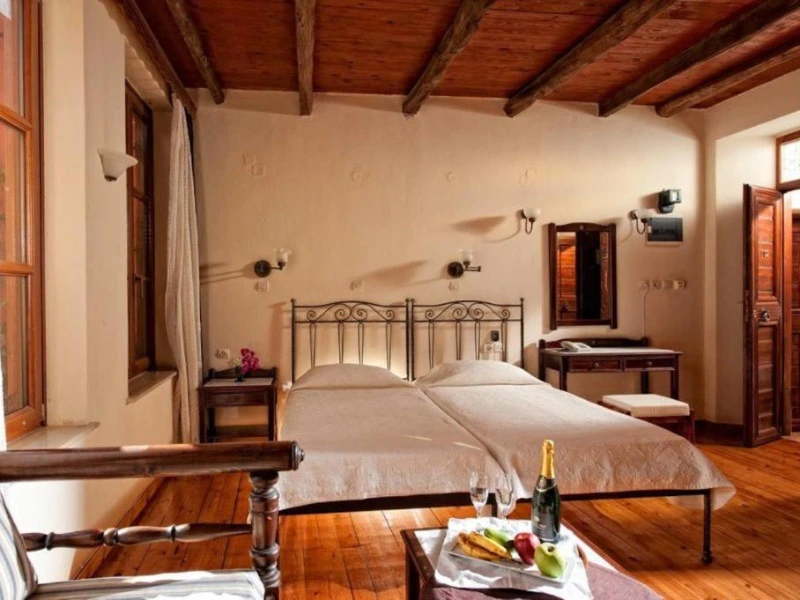 Wil je je verblijf in Rethymnon nét wat specialer maken, dan is dit 14e-eeuwse boetiekhotel een mooie keuze. Het ligt in het oude centrum, waar de Venetiaanse invloeden nog overal zichtbaar zijn, van de kamers tot de details in het hotel. De sfeer voelt traditioneel en warm aan, en in een paar minuten wandel je het levendige centrum in.