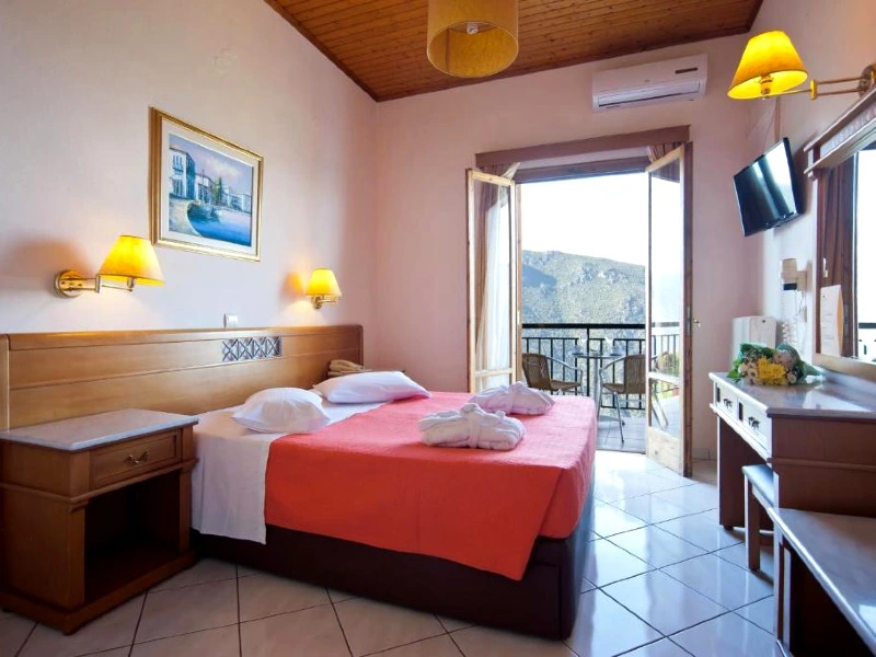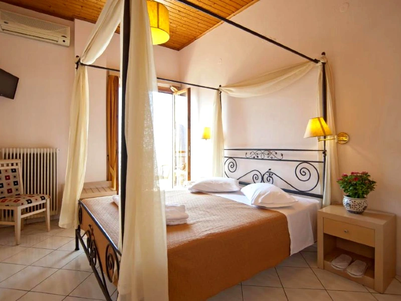 De komende nachten slaap je in een eenvoudige maar sfeervolle kamer in een Grieks herenhuis. Vanaf je balkon heb je uitzicht op de bergen of de zee. Het hotel beschikt over airco en gratis wifi in de openbare ruimtes. ’s Ochtends geniet je op het patioterras van het ontbijt. Nadat je je hebt geïnstalleerd, kun je lekker rustig aan doen of gaan zwemmen in een van de nabijgelegen vissersbaaitjes.