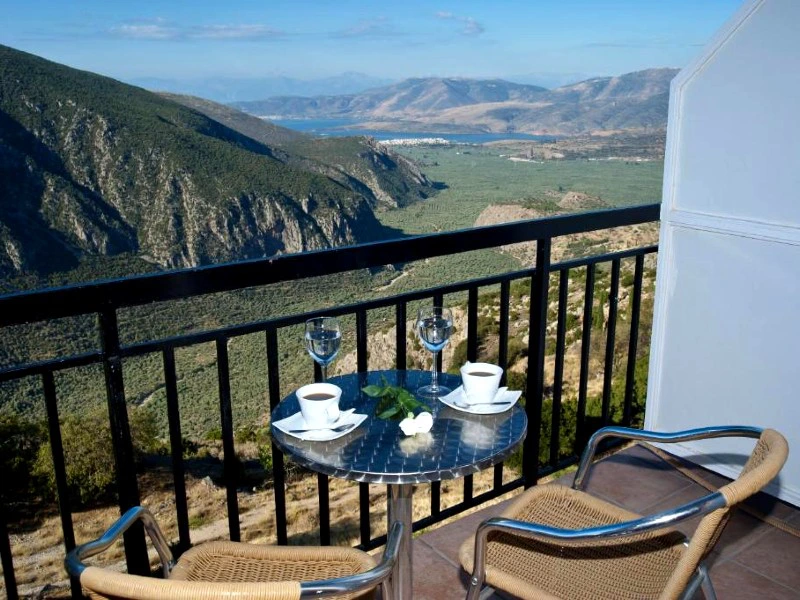 Geef je de voorkeur aan de stad in plaats van het strand? Boek dan de optie in het centrum van Delphi. Je hotel ligt aan de rand van de kleine stad. Het uitzicht over de vallei (met in de verte de blauwe zee) is weergaloos. Bovendien is het zo’n 10 minuten lopen vanaf je hotel naar de archeologische site Delphi. ’s Avonds ben je in no time bij één van de tavernes.