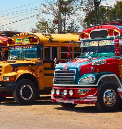 Wie in Guatemala reist, ziet ze overal: felgekleurde, oude Amerikaanse schoolbussen die als openbaar vervoer door het hele land rijden. Ze worden “chickenbussen” genoemd, omdat er soms letterlijk van alles meegaat, van boodschappentassen tot manden met kippen. Het is spotgoedkoop en een belevenis op zich, maar er kleven ook nadelen aan: ze hebben geen vaste vertrektijden, zitten vaak overvol, stoppen veel onderweg en de rijstijl kan onrustig zijn. Ook qua veiligheid en bagagebewaking zijn ze minder betrouwbaar dan de shuttles die wij voor je regelen. Voor een kort traject kan het leuk zijn om eens mee te maken, maar voor langere afstanden of wanneer je reist met bagage, kinderen of een strakke planning, raden we je aan te kiezen voor de betrouwbaarheid en het comfort van shuttlebusjes of privétransfers.