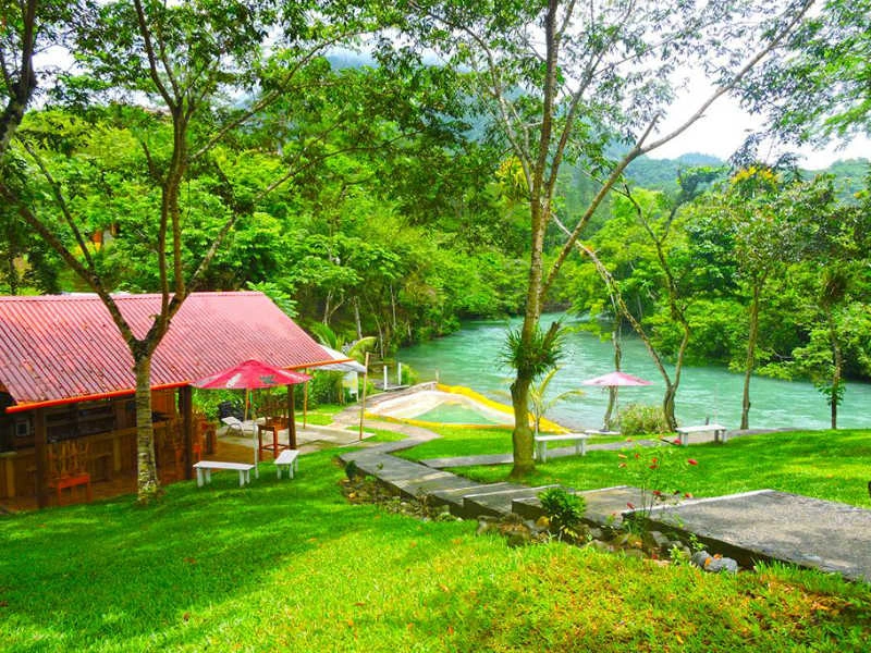 Rio Dulce ligt aan de oevers van het Lago de Izabal, verbonden door een hoge brug, en voelt meteen tropisch en relaxed aan. Je slaapt in een houten bungalow boven het water, met een fijne bar waar je de beroemde piña coladas en margaritas kunt proberen. Het restaurant serveert lokale Garifuna-gerechten en bij het hotel kun je zwemmen, tennissen of vissen. Voor een klein avontuur kun je over de openluchtmarkt struinen en vers fruit kopen: mango, ananas en passievrucht liggen er volop.