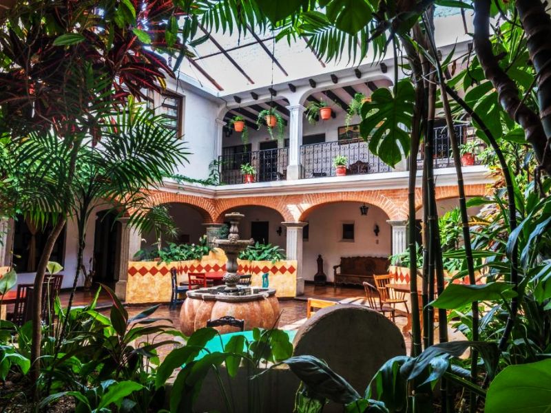 De straten zijn geplaveid met kinderkopjes, de gevels zijn vrolijk gekleurd en overal zie je oude kerken en kloosters. Je logeert de komende twee nachten in een knusse posada met een groene binnentuin, waar kolibries af en aan vliegen. Als je zin hebt, loop je meteen even naar het centrale plein. Er zitten overal mensen op de bankjes te kletsen, kinderen rennen achter een voetbal aan en straatverkopers bieden verse mango en tamales aan. Het voelt meteen gemoedelijk en veilig.