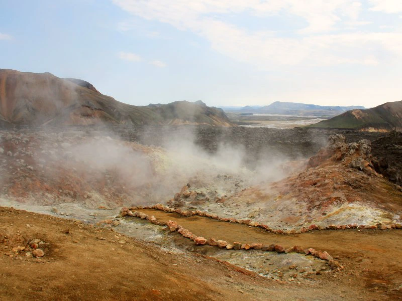 Een hike door het Landmannalaugar-gebied mag eigenlijk niet ontbreken vandaag, wanneer je hier toch ‘langs’ rijdt. Landmannalaugar is een dal in het binnenland van IJsland, niet ver van de Hekla-vulkaan en staat met name bekend om de kleurrijke ryolietbergen. Hoe ver je kijkt zie je de gele, rode, bruine en grijsgroene bergen om je heen. Schijnt de zon erop, dan lichten de bergen op. En je ziet niet alleen bergen om je heen, je vindt hier ook lavavelden. Het meest indrukwekkende lavaveld is Laugahraun. Men zegt dat in de gestolde lava wezens als trollen en elfjes verborgen zitten. En aan de voet van het lavaveld vind je hete en koude bronnen. De hete bronnen komen uit in een beek; prima badderen. Je gaat met een gids op pad om dit prachtige gebied te verkennen. Het meeting point is op ongeveer een uur rijden van je hotel waar je vannacht hebt overnacht. De wandeling duurt ongeveer vier uur – daarna heb je nog voldoende tijd om verder te rijden naar bijvoorbeeld Reykjavik.