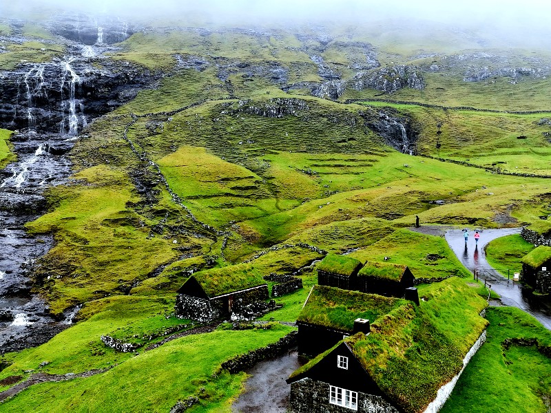 Daarna rijd je circa 1,5 uur noordwaarts, langs bergwegen en uitzichtpunten, richting het dorp Gjógv op Eysturoy. Hier verblijf je in een kleinschalig en sfeervol hotel met kenmerkend grasdak. Die grasdaken zijn niet alleen mooi, maar ook praktisch: ze isoleren goed tegen kou en wind en houden regen vast. In de zomer bloeien er vaak bloemen bovenop, soms lopen er zelfs schapen overheen.