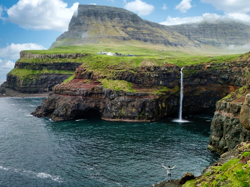 Ofwel welkom op de Faeröer eilanden! Vanaf Nederland vlieg je met een overstap via Kopenhagen, Billund of Edinburgh, de totale reistijd bedraagt ongeveer 4,5 uur. Na aankomst op de luchthaven van Vágar haal je je huurauto op en begint je ontdekkingstocht. Afhankelijk van het tijdstip dat je aankomt kun je vandaag het eiland Vágar al gaan verkennen. Tip voor vandaag: bezoek het nabijgelegen dorpje Gásadalur. Vanaf hier wandel je over gemarkeerde pad richting de beroemde Múlafossur-waterval, die rechtstreeks de oceaan in stort. Bij helder weer zie je de rotspunten van Tindhólmur in zee liggen. Aan het einde van de dag is dit een prachtige plek voor zonsondergang, wanneer het licht zacht over de groene heuvels valt. Je slaapt op Vágar, in een fijn hotel op korte afstand van de luchthaven en het plaatsje Sørvágur, een fijne start van de reis.