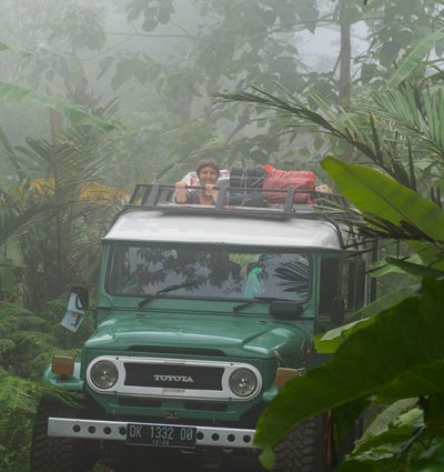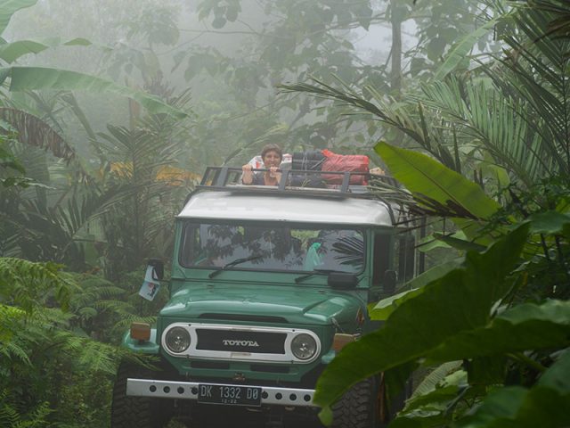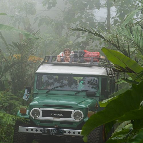 Waarschijnlijk ben je al even onderweg en inmiddels gewend geraakt aan het comfort van je busje. Wanneer de tassen worden overgeladen in de jeep voel je dat er een heel ander hoofdstuk van de reis is aangebroken. Zonder airco, zachte stoelen en telefoonlader rijd je verder. De eerste 500 meter naar het kleine jungle-restaurant is een goed voorproefje: zelfs over het asfalt wiebelt en trilt de jeep alle kanten op.