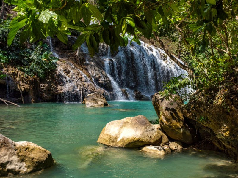 Daarna rijd je naar de Lapopu-waterval, een brede waterval die trapsgewijs naar beneden stroomt tussen het groen. Het water is helder en fris – ideaal voor een korte duik of om even met je voeten in het water te zitten. Een rustige plek midden in de natuur, waar je kunt afkoelen en opladen.