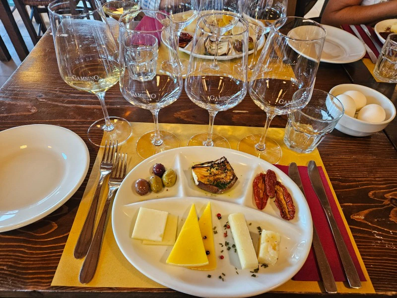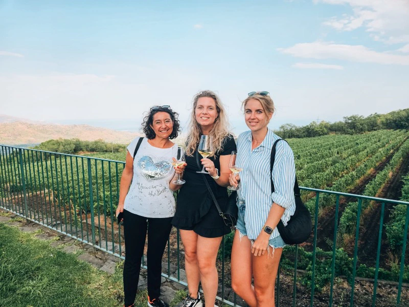 Ontdek de smaken van Sicilië tijdens een wijnproeverij bij Gambino. Bezoek de wijngaarden van een familiebedrijf hoog op de flanken van de Etna en ontdek hoe Siciliaanse wijnen écht gemaakt worden. Samen met een sommelier wandel je door de wijngaarden, leer je over de vulkanische bodem en de druivensoorten en breng je een kijkje in de wijnkelder. Je proeft vier wijnen van eigen productie. De proeverij wordt begeleid door een selectie van lokale vleeswaren, kazen, huisgemaakte patés en olijfolie, geserveerd met brood en grissini. Het uitzicht maakt het extra bijzonder: de wijngaarden liggen op terrassen met zicht op de groene heuvels van de Etna en de omliggende dorpjes. Tussen de proeverij en de uitleg door leer je niet alleen over wijn, maar ook over de geschiedenis van de regio en het leven op de vulkaan.