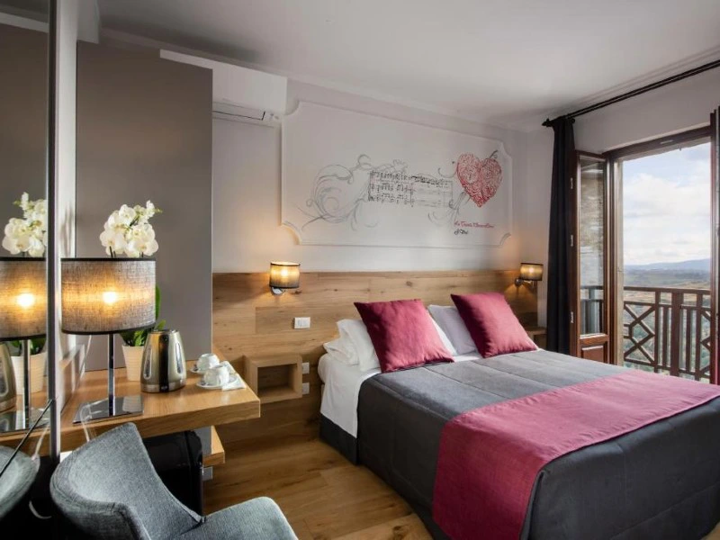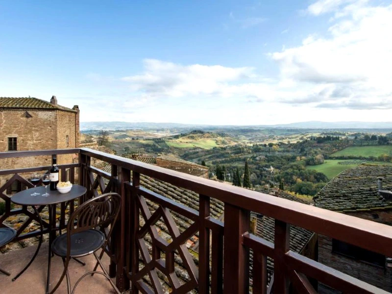 Upgrade je verblijf naar een hotel midden in het hart van San Gimignano, waar je ’s ochtends ontwaakt met uitzicht op de middeleeuwse torens. Wandel direct de oude straatjes in en proef het Toscaanse leven zoals de locals het kennen. Je zit midden in het sfeervolle centrum, met trattoria’s en gelaterias om de hoek.