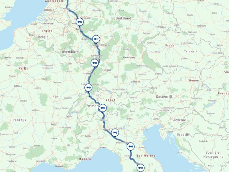 De route van Nederland naar Italië biedt gelukkig voldoende laadpunten, waardoor je je geen zorgen hoeft te maken dat je langs de weg stil komt te staan. Onderweg kun je bij verschillende snellaadstations stoppen, zoals bijvoorbeeld bij een van de vele Fastned of Shell Recharge. Deze zijn handig geplaatst, zodat je altijd snel weer on the road bent.