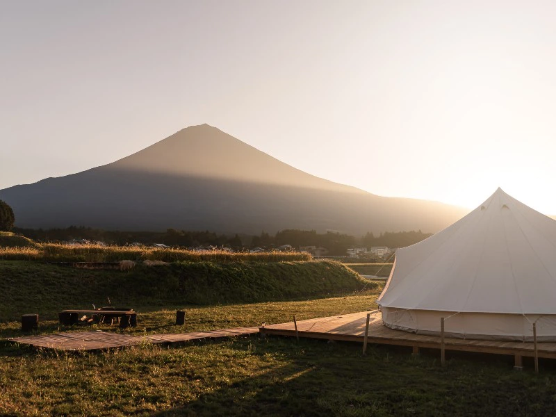 Als alternatief op een hotel in de stad kun je ook kiezen voor een glamping tussen de rijstvelden aan de voet van Mt. Fuji. De eigenaar en oprichter van dit kleinschalige eco-camp is de vriendelijke meneer Masa, een duurzaamheidsexpert die na tientallen jaren wereldwijd advies te hebben gegeven in ecotoerisme terugkeerde naar zijn thuisregio op dit op te starten.