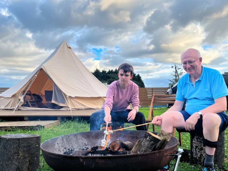 ’s Ochtends rol je uit je bed, opent de tent en kijkt uit over de heilige vulkaan. De frisse berglucht, het zachte ruisen van bomen en de geur van versgebakken brood uit de keuken maken je wakker. De dag na aankomst staat er een leuke eco-tour op het programma, waarbij je samen met een lokale gids een wandeling gaat maken door een oeroude bos aan de voet van Mt. Fuji. De lokale gids vertelt tijdens de wandeling, die geschikt is voor jong en oud, verhalen over de natuur en de cultuur. s Avonds kruip je rond het kampvuur, sterren fonkelen boven je en door de telescoop zie je een heel universum opengaan.