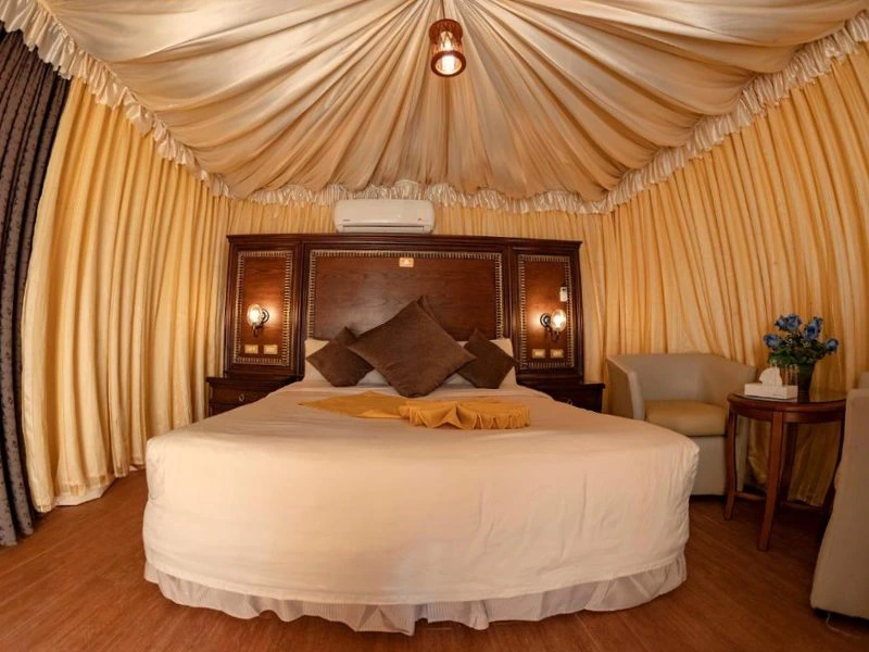 Wil je graag dé woestijnervaring, maar liever met wat meer comfort? Dan plannen we een tent voor je in met airco en eigen sanitair. Je tent staat ver weg van de bewoonde wereld en is onderdeel van een kleinschalig bedouïnen tentenkamp. Je hebt volledige privacy en overnacht comfortabel in een fijn bed.