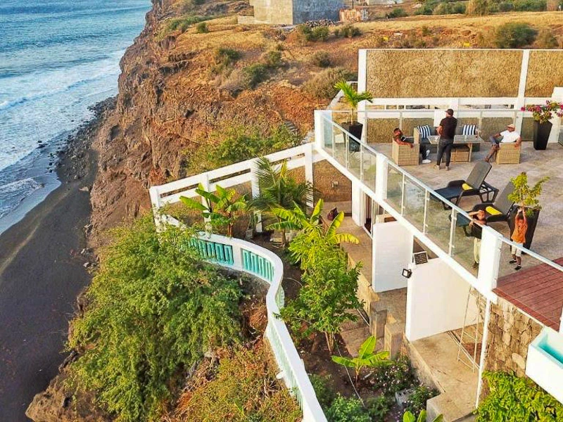 Wil je wat meer rust en ruimte, dan kun je kiezen voor een ecolodge net buiten São Filipe. Hier logeer je in comfortabele bungalows midden in de natuur, met uitzicht op zowel de oceaan als de vulkaan. De sfeer is kleinschalig en duurzaam: lokaal eten, een groene omgeving en een gastvrije ontvangst. Je zit iets verder van de stad, maar hebt juist de voordelen van stilte, sterrenhemel en een frisse duik in het zwembad na een dag vol indrukken. Ook bij deze variant ga je op pad met een local om Sao Filipe te verkennen.